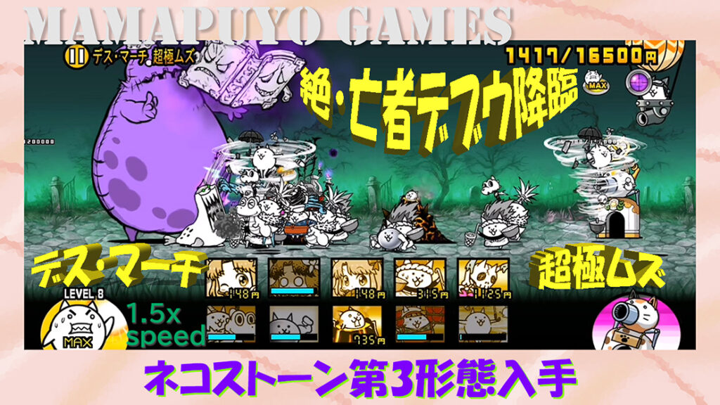 絶・亡者デブウ降臨 デス・マーチ 超極ムズ 全然勝てなかったステージですが、攻略情報を参考にして昨日クリア出来たので本日編集作業しました。ネコストーン第3形態 ...