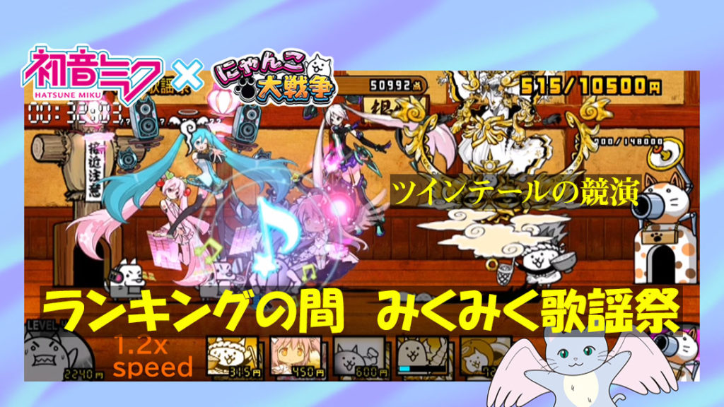 にゃんこ大戦争 初音ミクコラボイベント全ステージ編集完了しました。余力があればもう少しランキングの間を頑張って高得点を狙いたいと思います。動画はコチラ↓良かっ ...