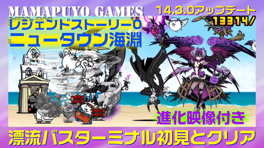 14.3.0アップデート 虚影の加護女神ベガ・聖魔探偵ゼログラヴィティー使ってみた(ニュータウン海淵 漂流バスターミナル)(にゃんこ大戦争プレイ日記587)
