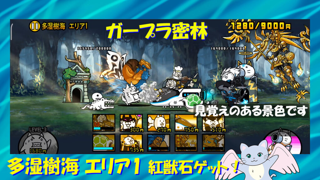 ガープラ密林 多湿樹海 エリア1 紅獣石ゲット!(にゃんこ大戦争プレイ日記406)