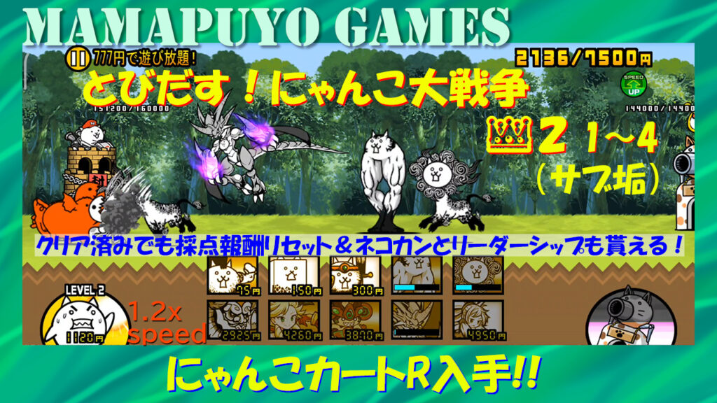 とびだす!にゃんこ大戦争 王冠2 ステージ1~4 にゃんこカートR入手!!(サブ垢)(にゃんこ大戦争プレイ日記414)