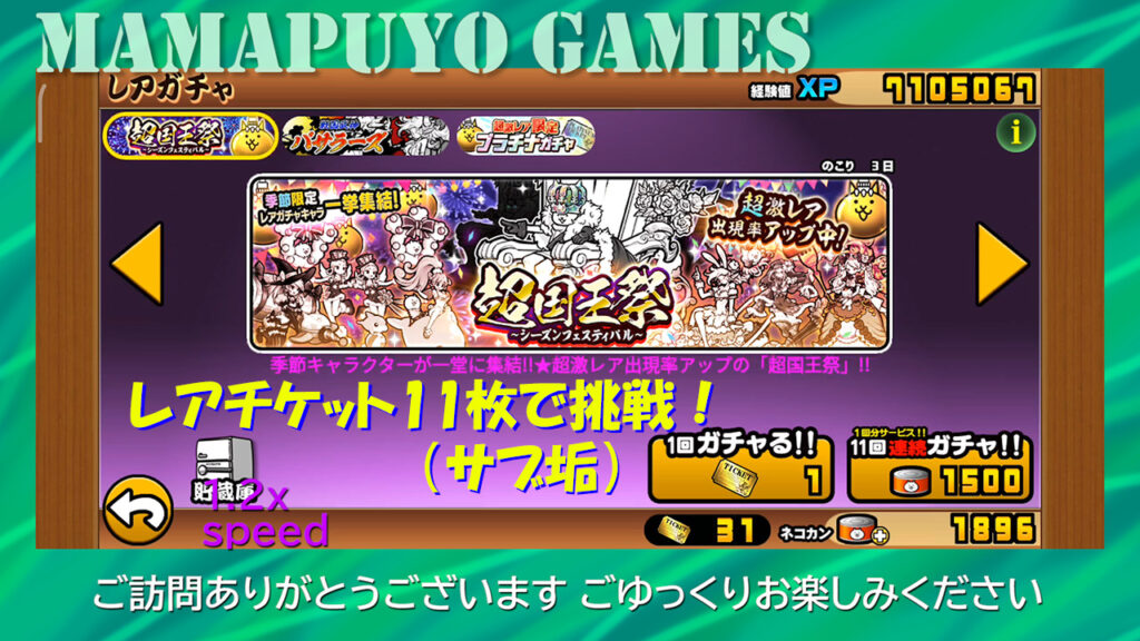 超国王祭 レアチケット11枚で挑戦!(サブ垢)(にゃんこ大戦争プレイ日記413)