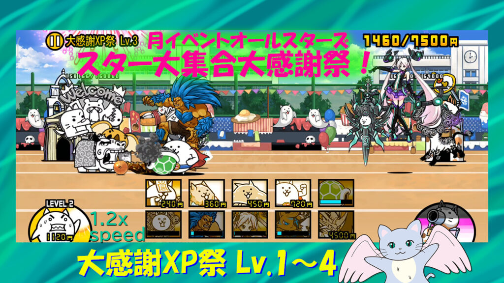 7000万ダウンロード記念 月イベントオールスターズ スター大集合大感謝祭! 大感謝XP祭 Lv.1~4、Lv.5~6(にゃんこ大戦争プレイ日記396)