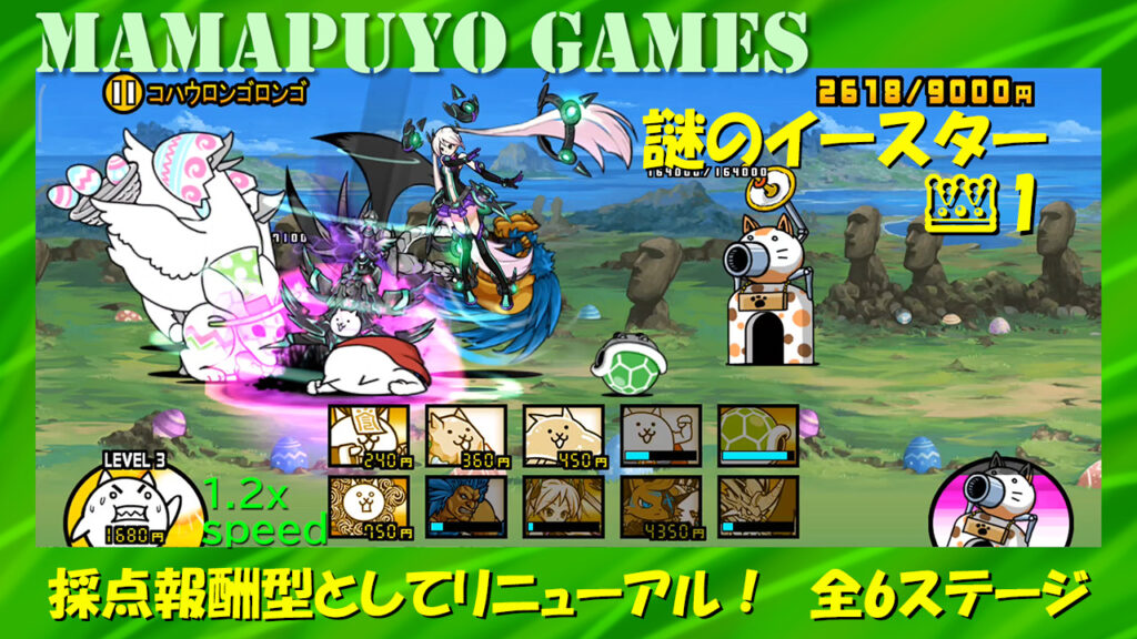 スター大集合大感謝祭! 大感謝XP祭 Lv.9、謎のイースター 王冠4 全6ステージ連続(にゃんこ大戦争プレイ日記399)