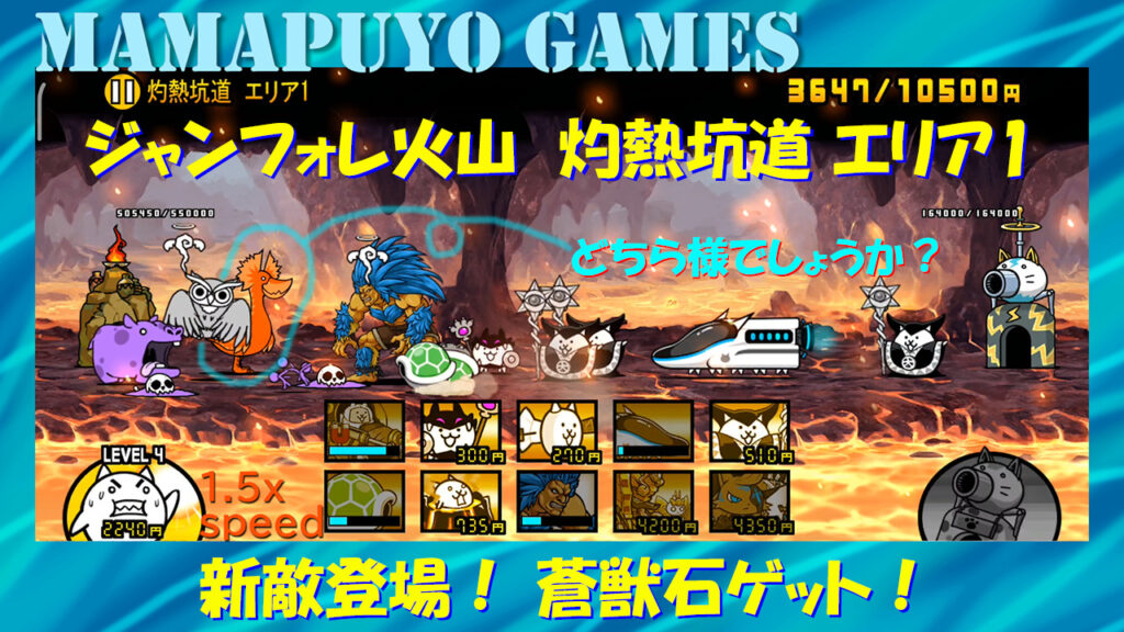 ジャンフォレ火山 灼熱坑道 エリア1 新敵登場!蒼獣石ゲット!(にゃんこ大戦争プレイ日記405)