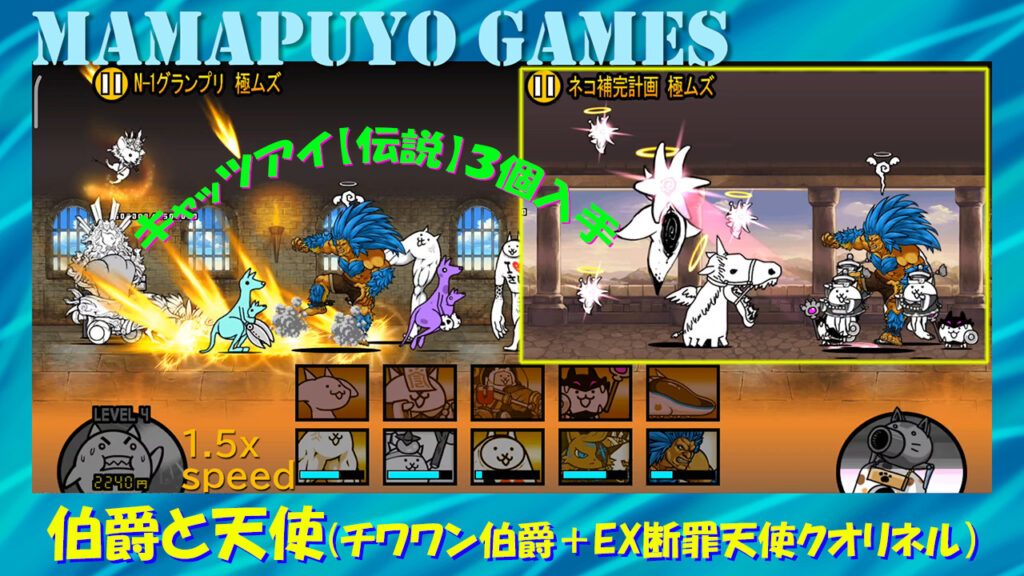伯爵と天使(チワワン伯爵降臨+EXステージ 断罪天使クオリネル降臨 ミッション報酬キャッツアイ【伝説】3個(にゃんこ大戦争プレイ日記403)