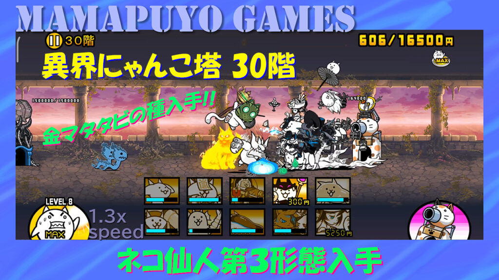 異界にゃんこ塔30階 金マタタビの種入手!! ネコ仙人第3形態入手(にゃんこ大戦争プレイ日記402)
