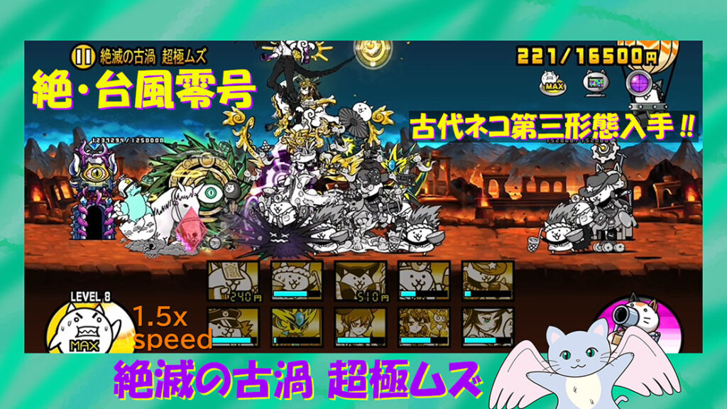 絶・台風零号 絶滅の古渦 超極ムズ 古代ネコ第三形態入手(にゃんこ大戦争プレイ日記346)