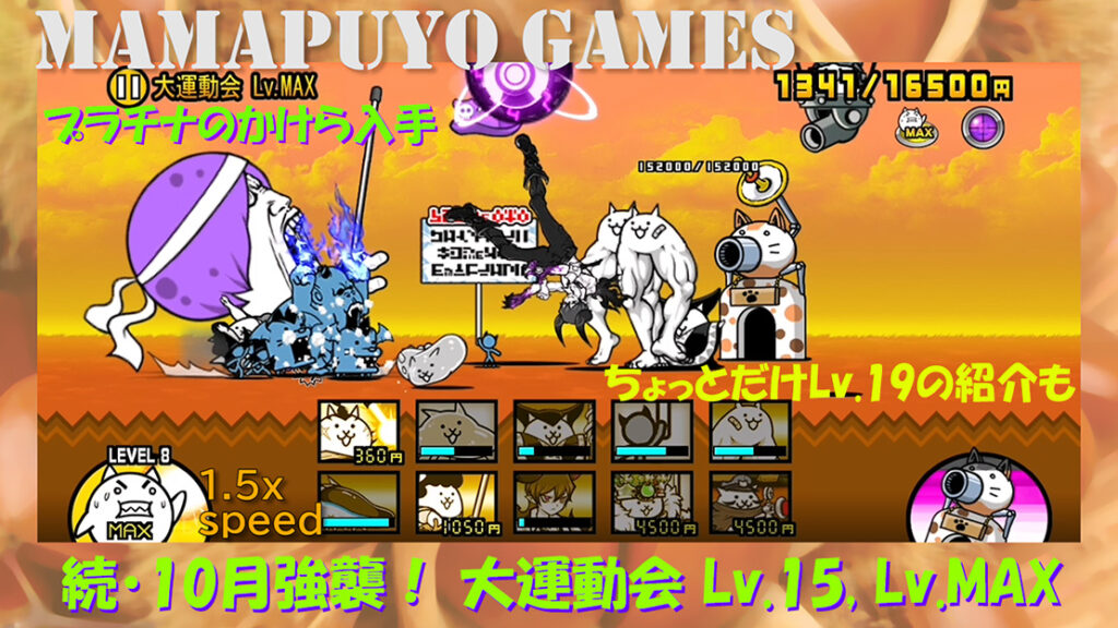 続・10月強襲! 大運動会Lv.15, Lv.MAX(ちょっとだけLv.19の紹介も)(にゃんこ大戦争プレイ日記327)