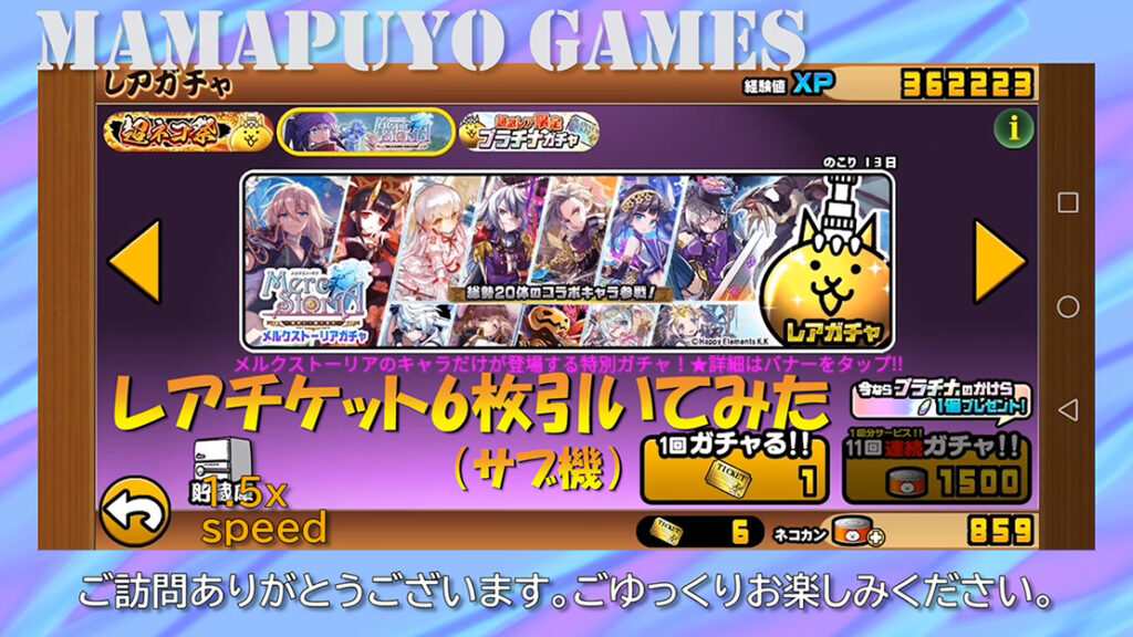 メルクストーリアコラボガチャ レアチケット6枚引いてみた(サブ機)(にゃんこ大戦争プレイ日記331)