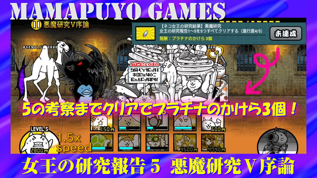 女王の研究報告5 悪魔研究Ⅴ方法、悪魔研究Ⅴ発見(にゃんこ大戦争プレイ日記335)