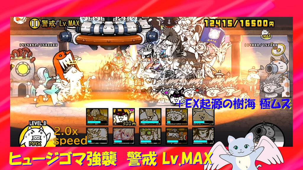 リニューアル!ヒュージゴマ強襲 警戒 Lv.MAX +起源の樹海 極ムズ(にゃんこ大戦争プレイ日記323)