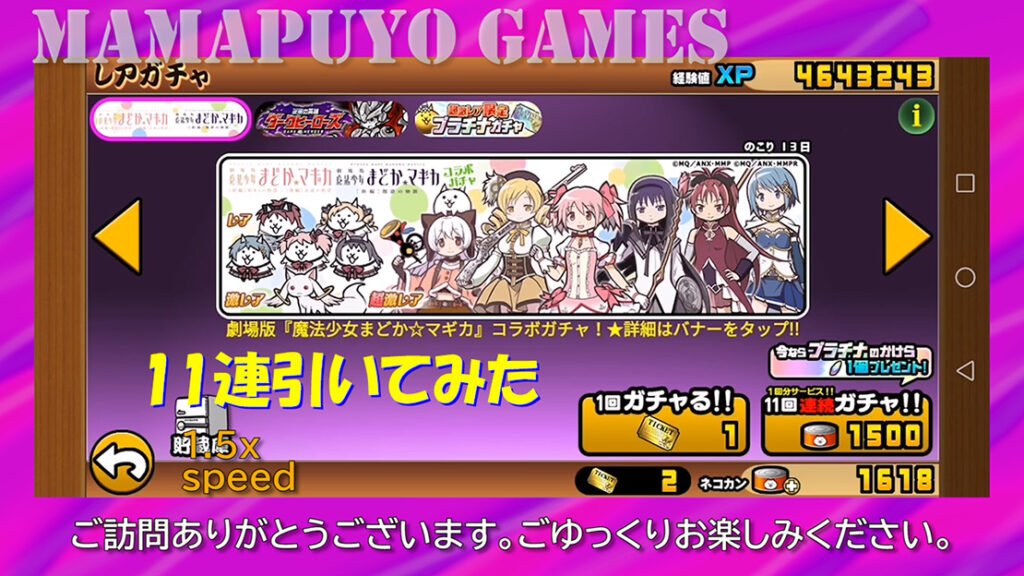 劇場版『魔法少女まどか☆マギカ』コラボガチャ 11連引いてみた(サブ機)(にゃんこ大戦争プレイ日記307)
