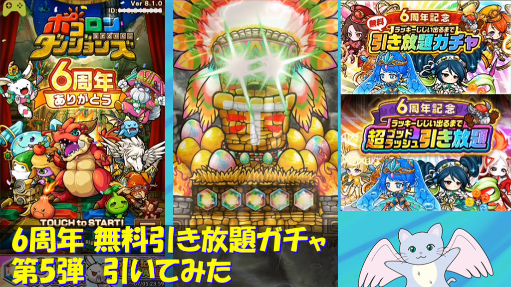 6周年記念 無料引き放題ガチャ 第5弾 ラッキーじじい出るまで超ゴッドラッシュ引き放題(ポコロンダンジョンズプレイ日記11)