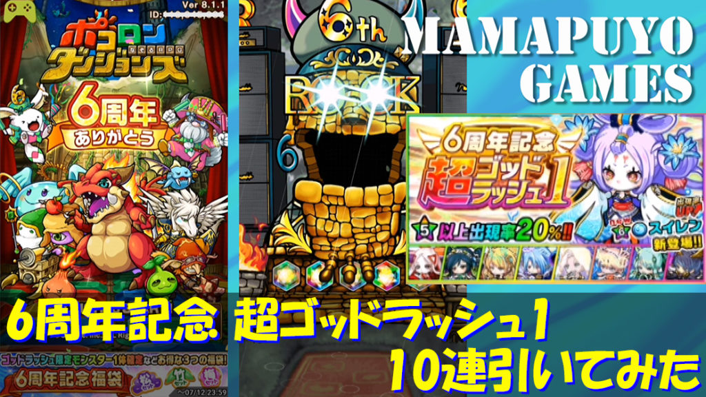 6周年記念 超ゴッドラッシュ1 10連引いてみた(ポコロンダンジョンズプレイ日記12)