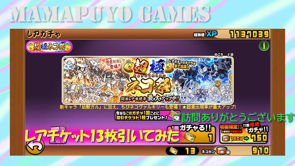 超極ネコ祭(8周年)レアチケット13枚引いてみた(にゃんこ大戦争プレイ日記230)