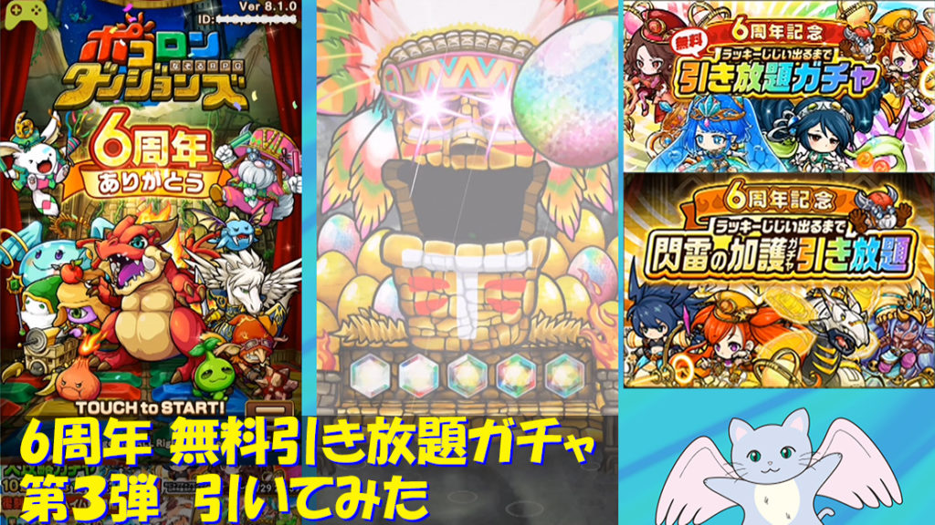 6周年記念 無料引き放題ガチャ 第3弾 ラッキーじじい出るまで閃雷の加護ガチャ引き放題 挑戦してみた(ポコロンダンジョンズプレイ日記9)